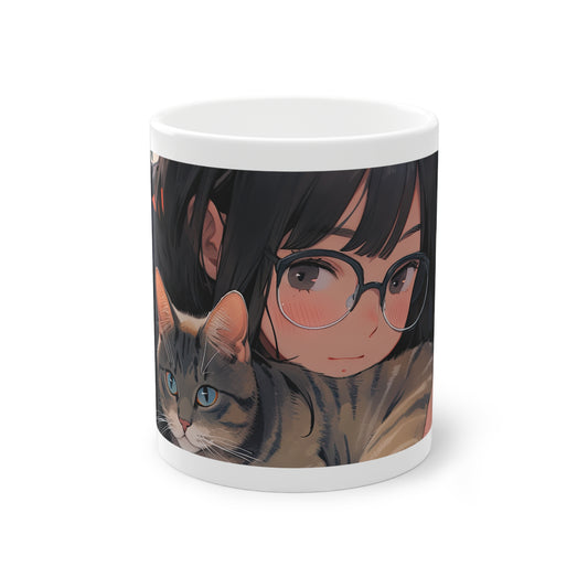 Anime Tasse mit Girl und süßer Katze im Cozy Style