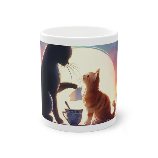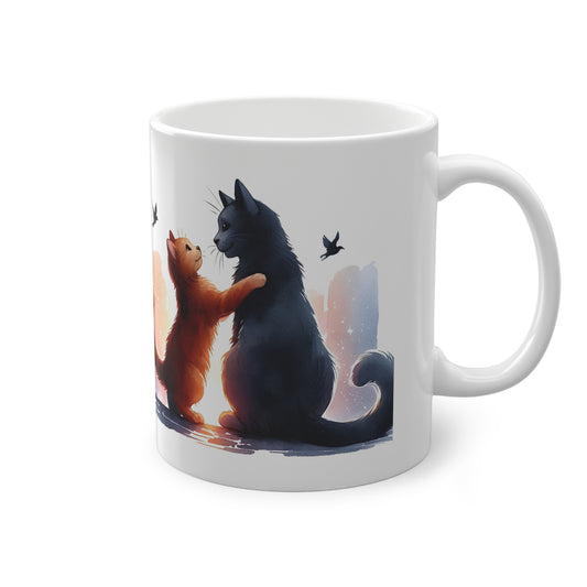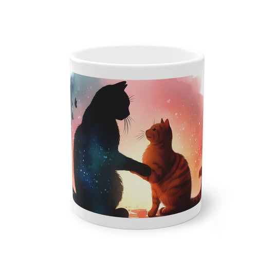 Katzen Tasse mit liebevoller Umarmung im Abendlicht