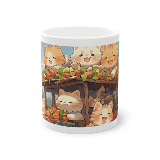 Anime Tasse mit süßen Katzen auf dem Bauernmarkt