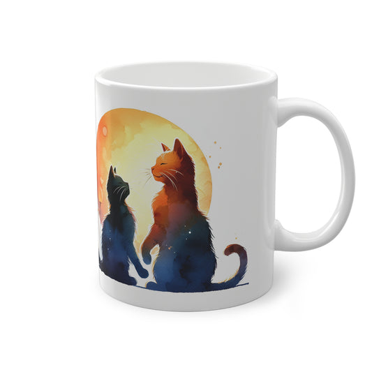 Katzen Tasse mit Sonnenuntergang in Aquarell und Herzmoment