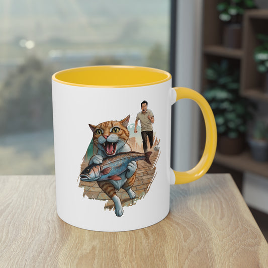 Katze auf Fischjagd Tasse - Lustiges Design für Angler und Katzenfans