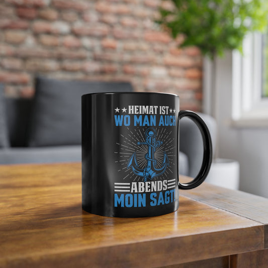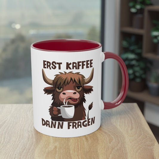 Erst Kaffee dann Fragen Tasse mit verschlafenem Rind