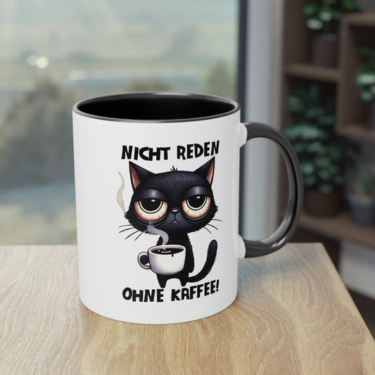 Nicht reden ohne Kaffee Tasse mit müder Katze