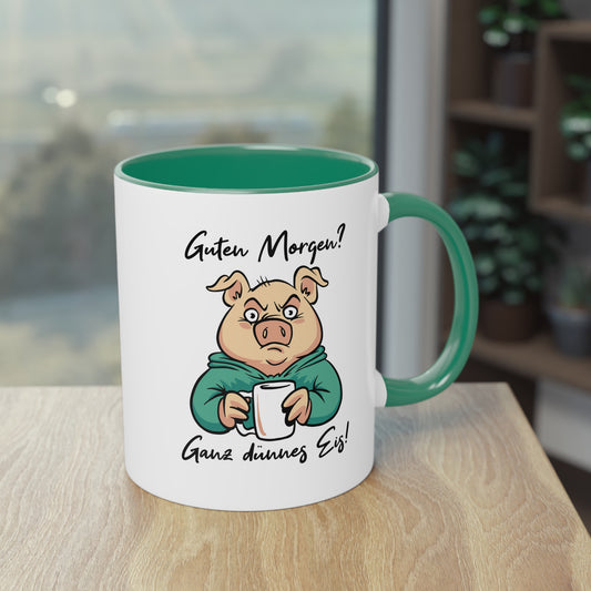 "Guten Morgen? Ganz dünnes Eis!" Tasse - Lustiges Schweinchen mit Kaffee