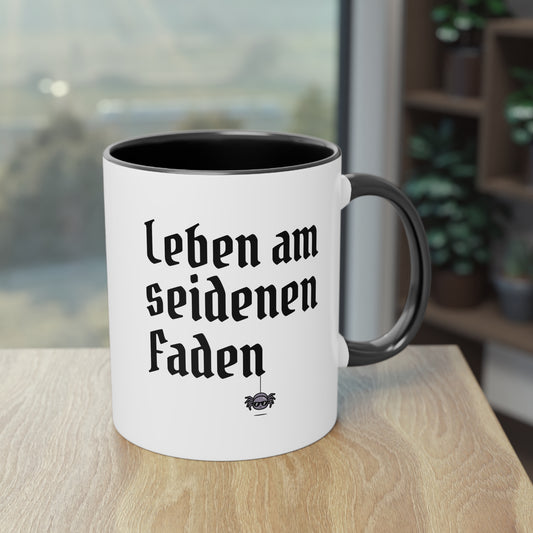 Tasse: "Leben am seidenen Faden" Spinnenhalter Spruch