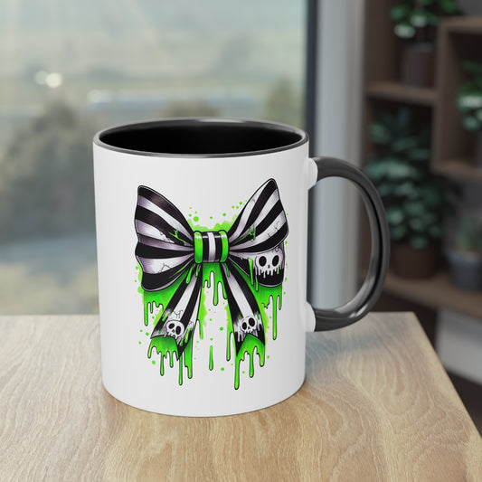 Halloween Tasse: Giftgrüne Schleife mit Totenköpfen im Gothic Style