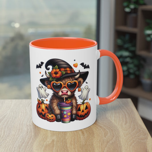 Süße Kuh mit Hexenhut, Geistern und Kürbissen Halloween Tasse