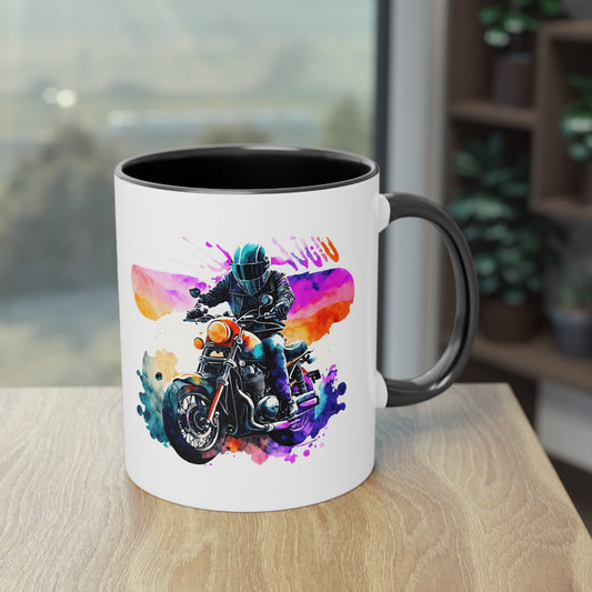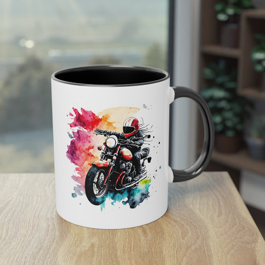 Motorrad Aquarell Tasse - Farbenstarker Biker auf Tour