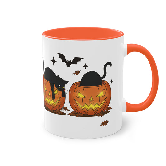 Halloween Tasse mit schwarzen Katzen in Kürbissen
