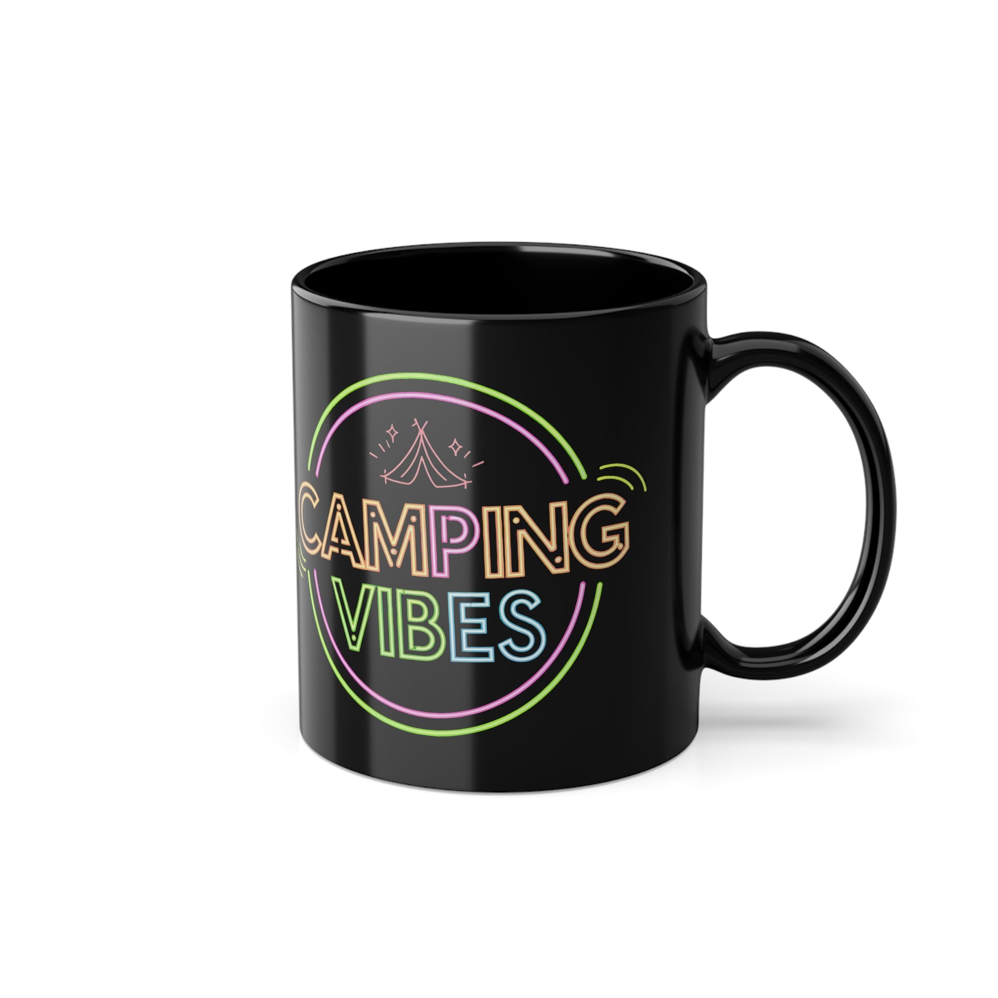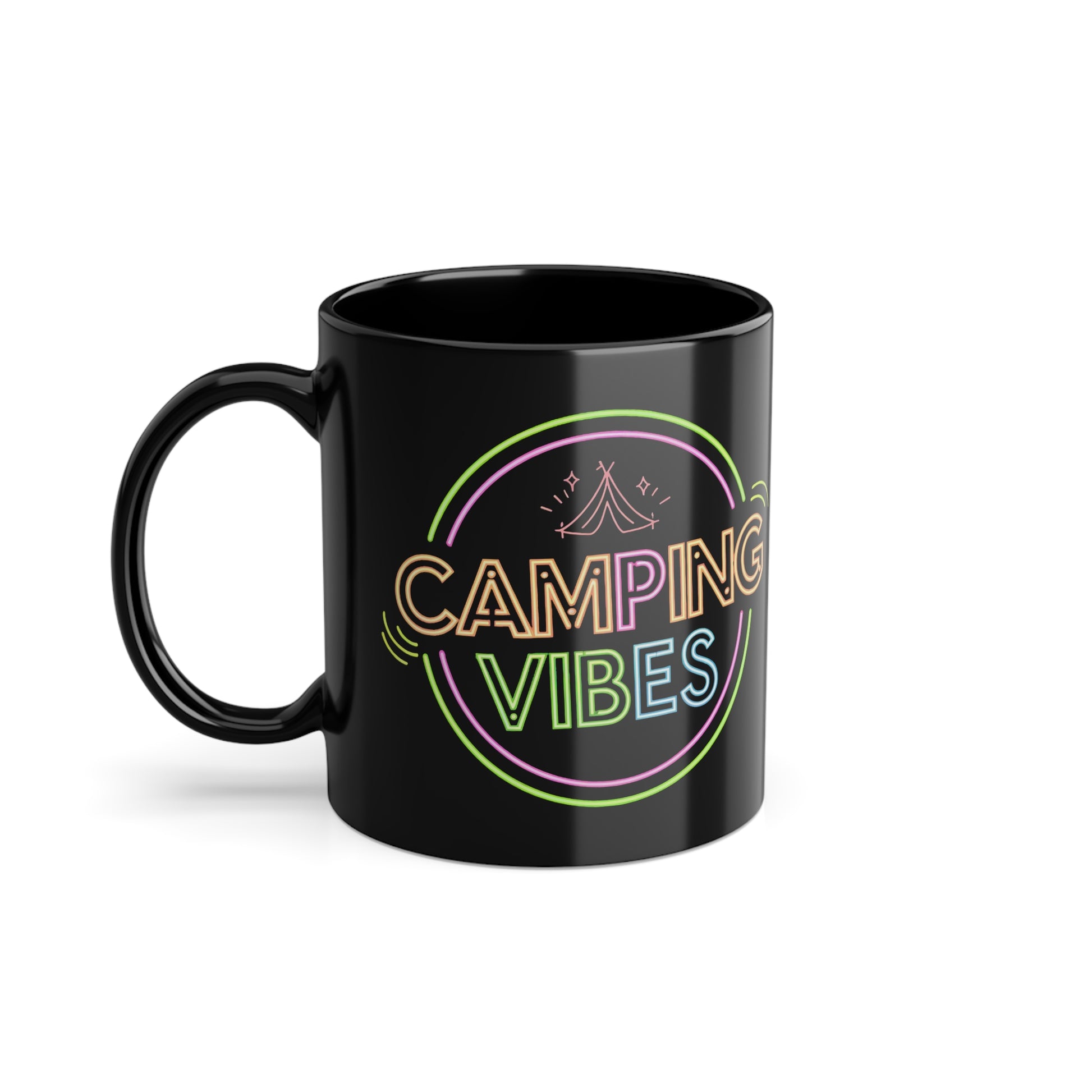 Camping Vibes Neon Tasse auf Schwarz | Outdoor Design