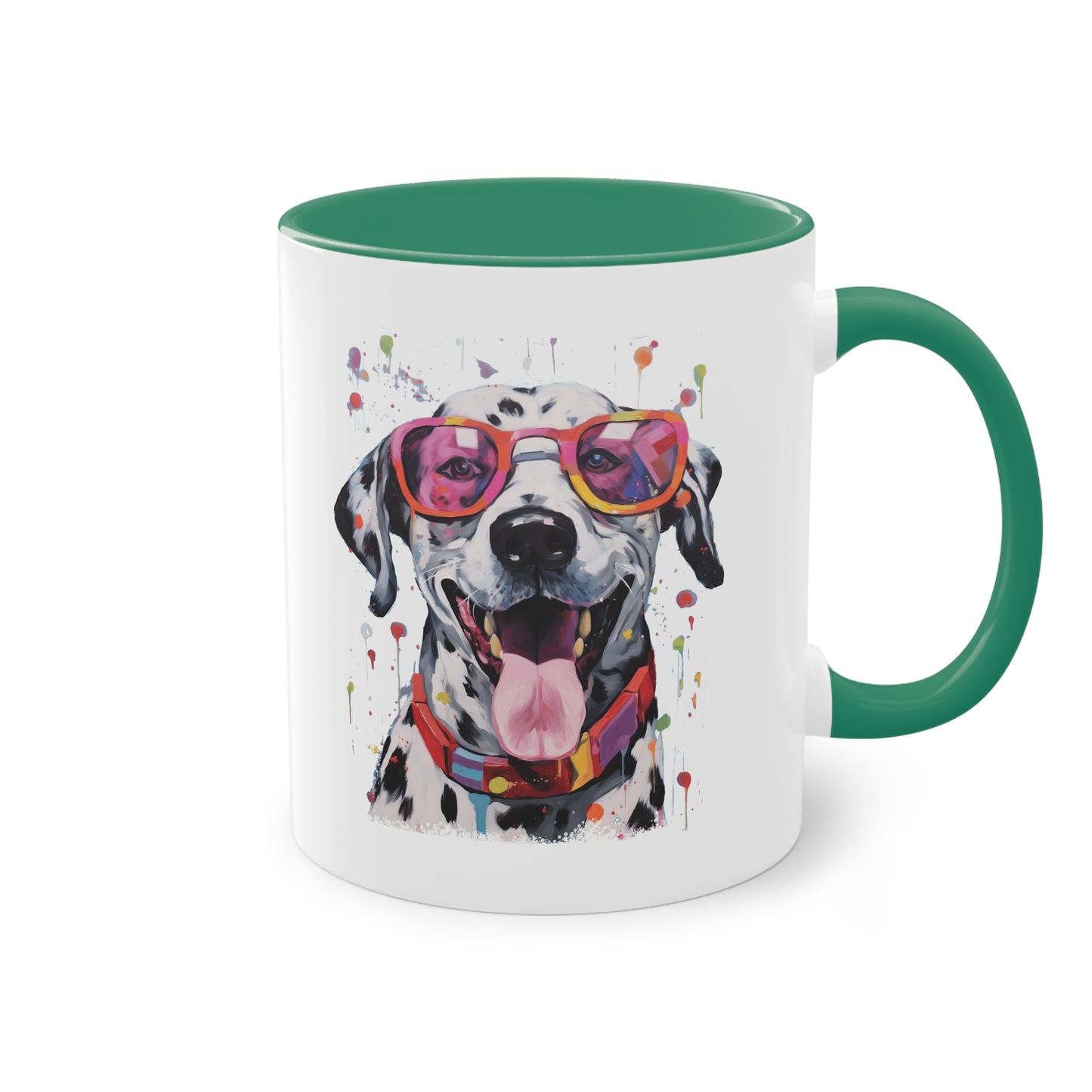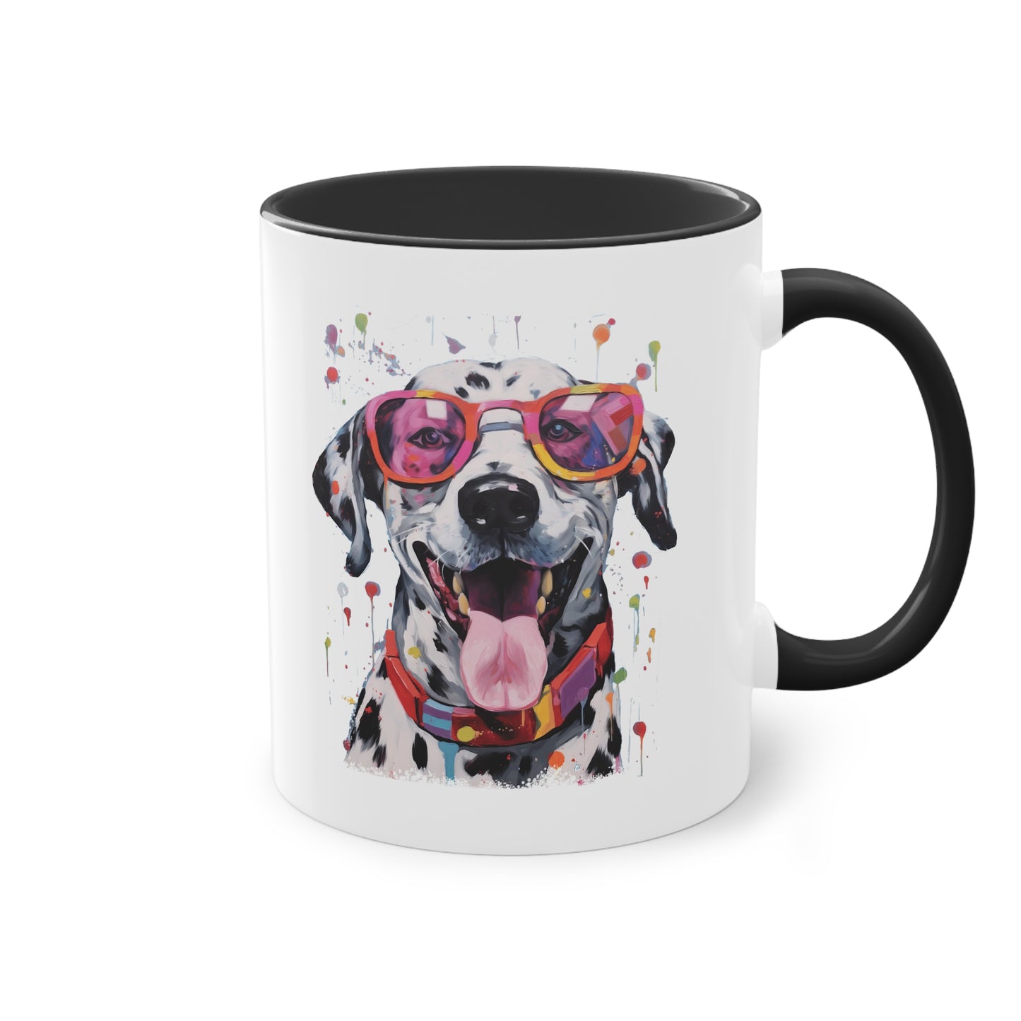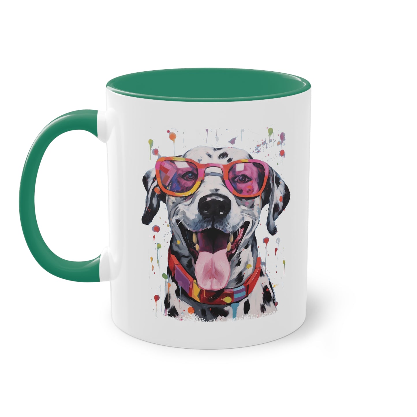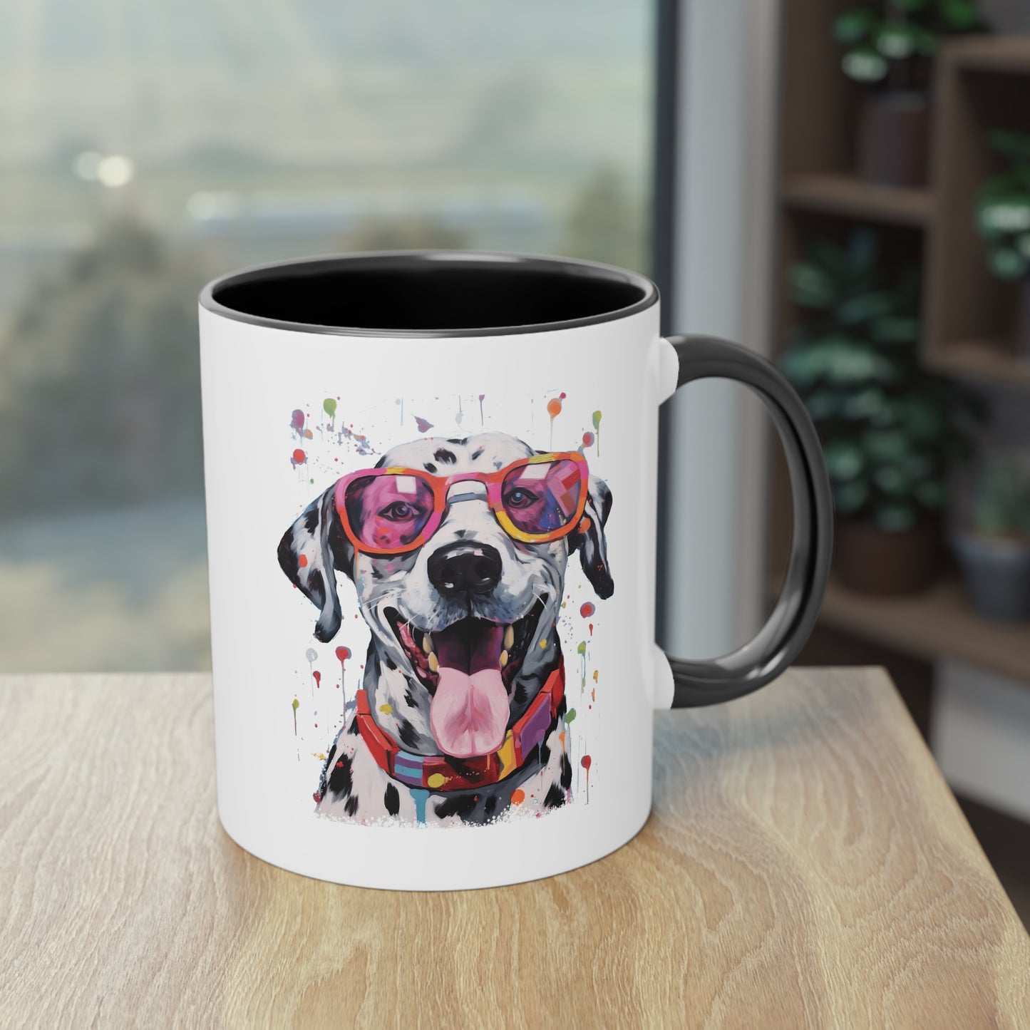 Setze ein farbenfrohes Statement mit unserer Dalmatiner Tasse, die einen fröhlichen Dalmatiner mit stylischer Sonnenbrille zeigt. Dieses lebendige Design bringt Lebensfreude und Humor in deinen Alltag und ist ein echter Hingucker für jeden Hundeliebhaber. Perfekt für morgendlichen Kaffee oder gemütlichen Tee am Abend.