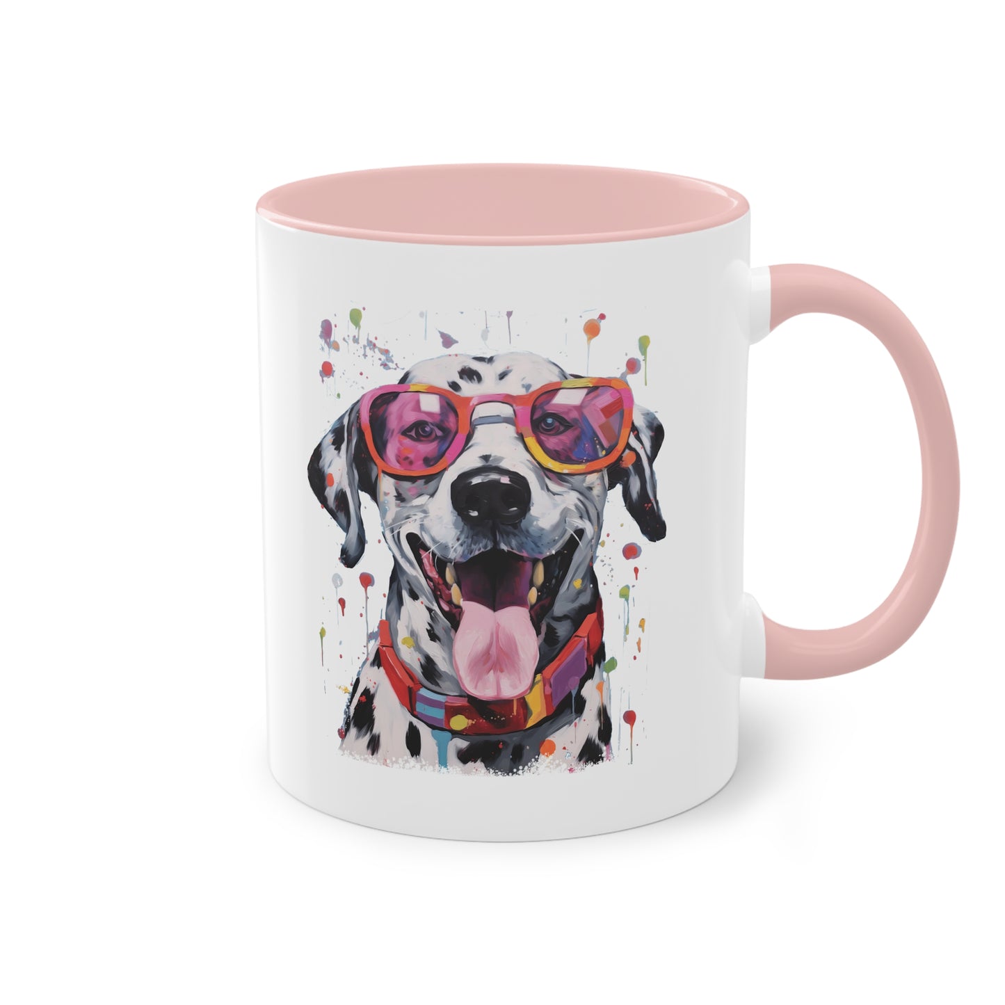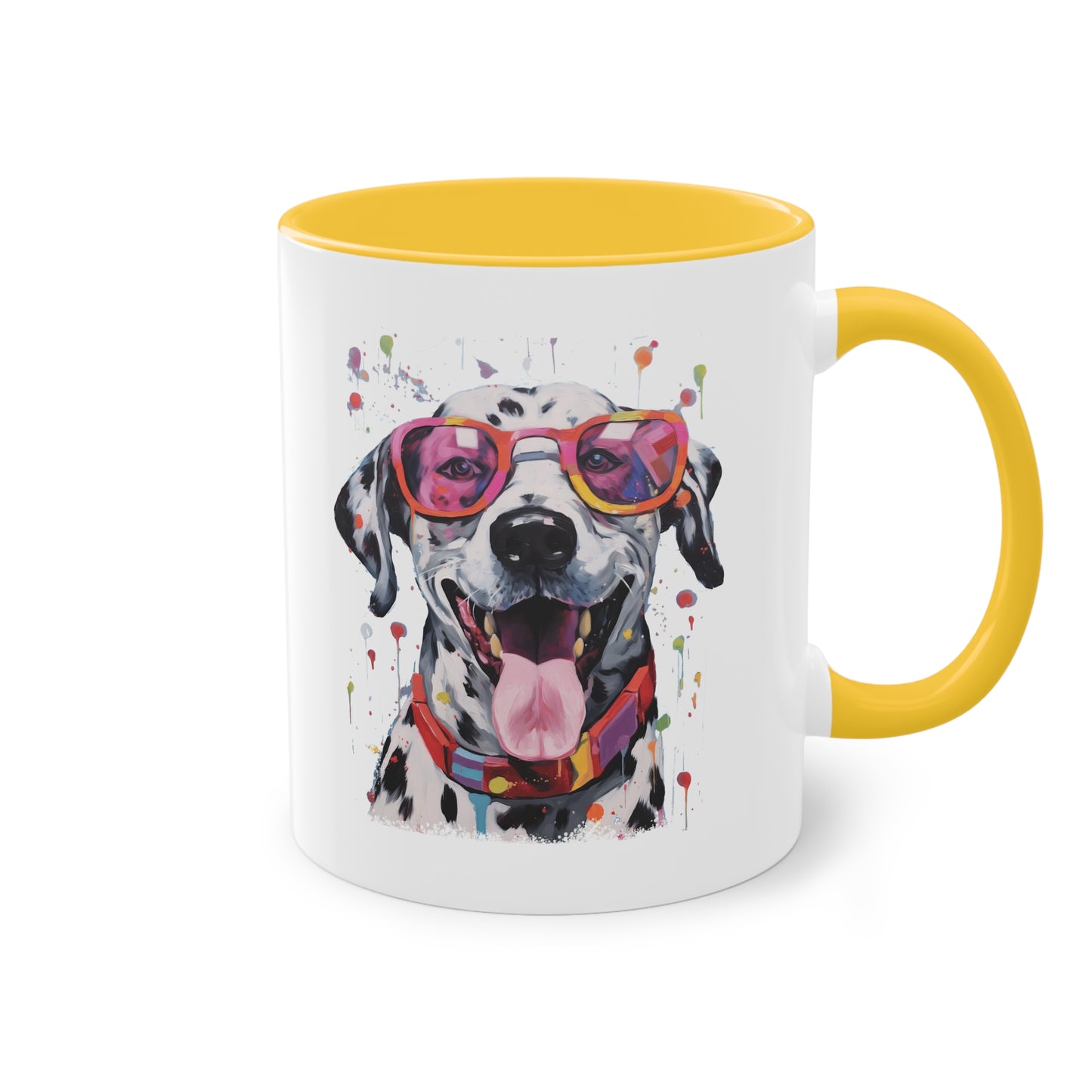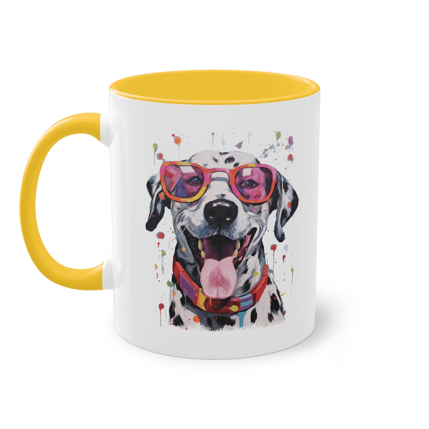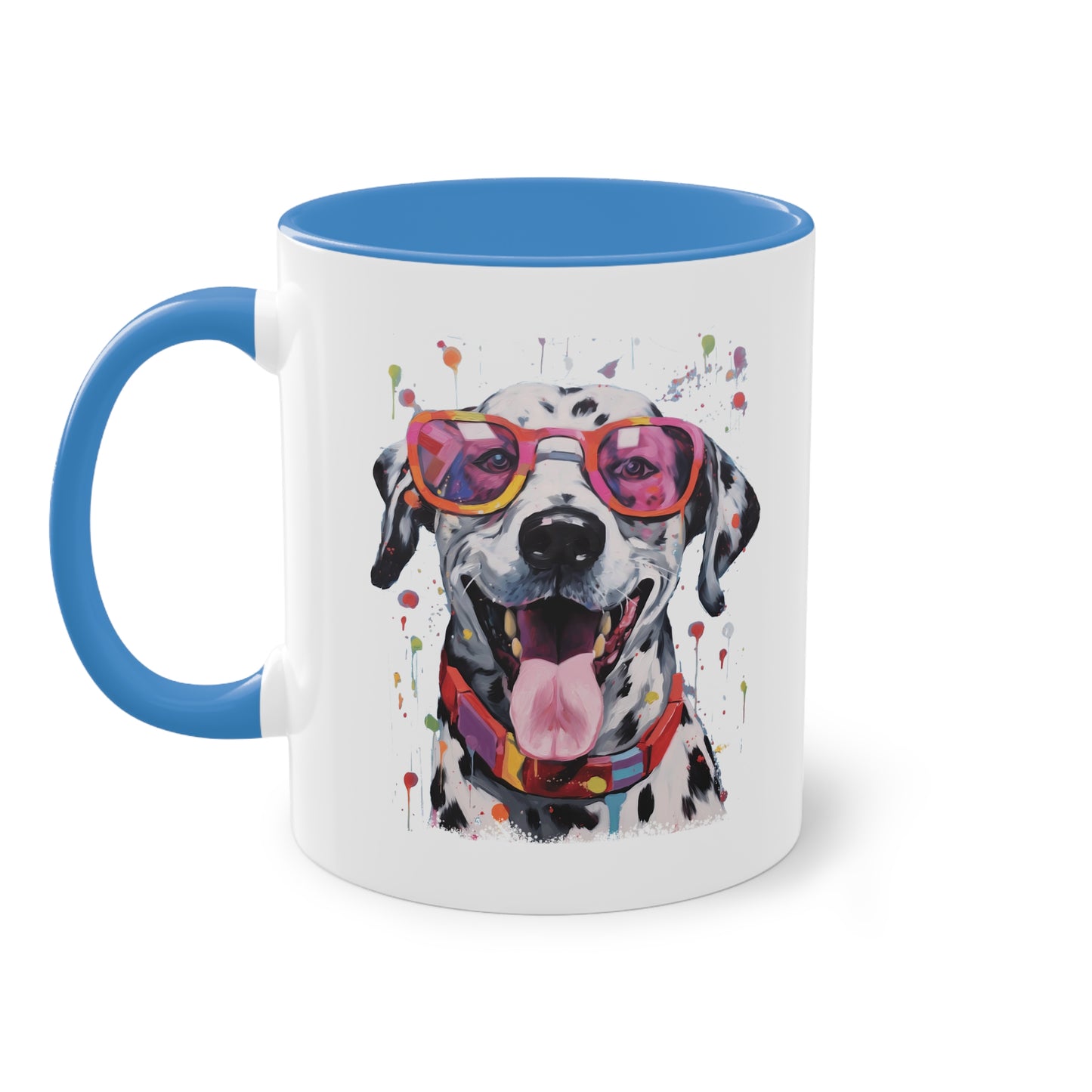 Setze ein farbenfrohes Statement mit unserer Dalmatiner Tasse, die einen fröhlichen Dalmatiner mit stylischer Sonnenbrille zeigt. Dieses lebendige Design bringt Lebensfreude und Humor in deinen Alltag und ist ein echter Hingucker für jeden Hundeliebhaber. Perfekt für morgendlichen Kaffee oder gemütlichen Tee am Abend.