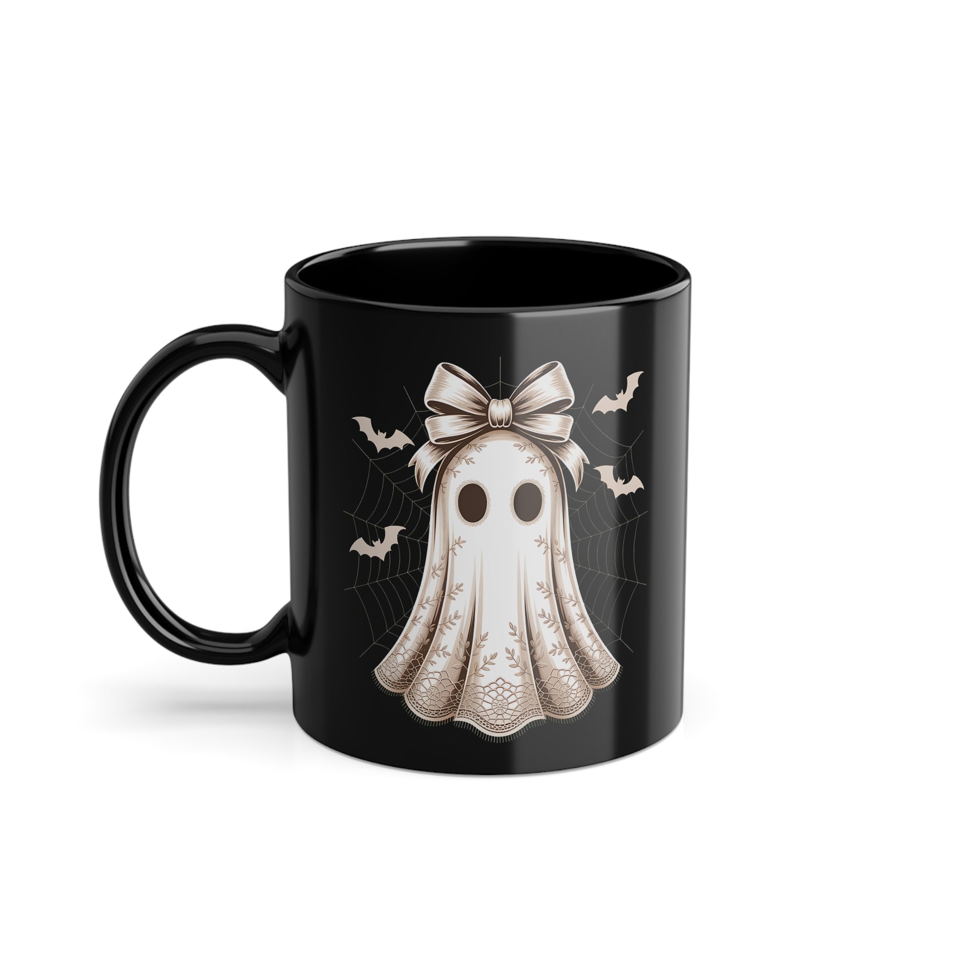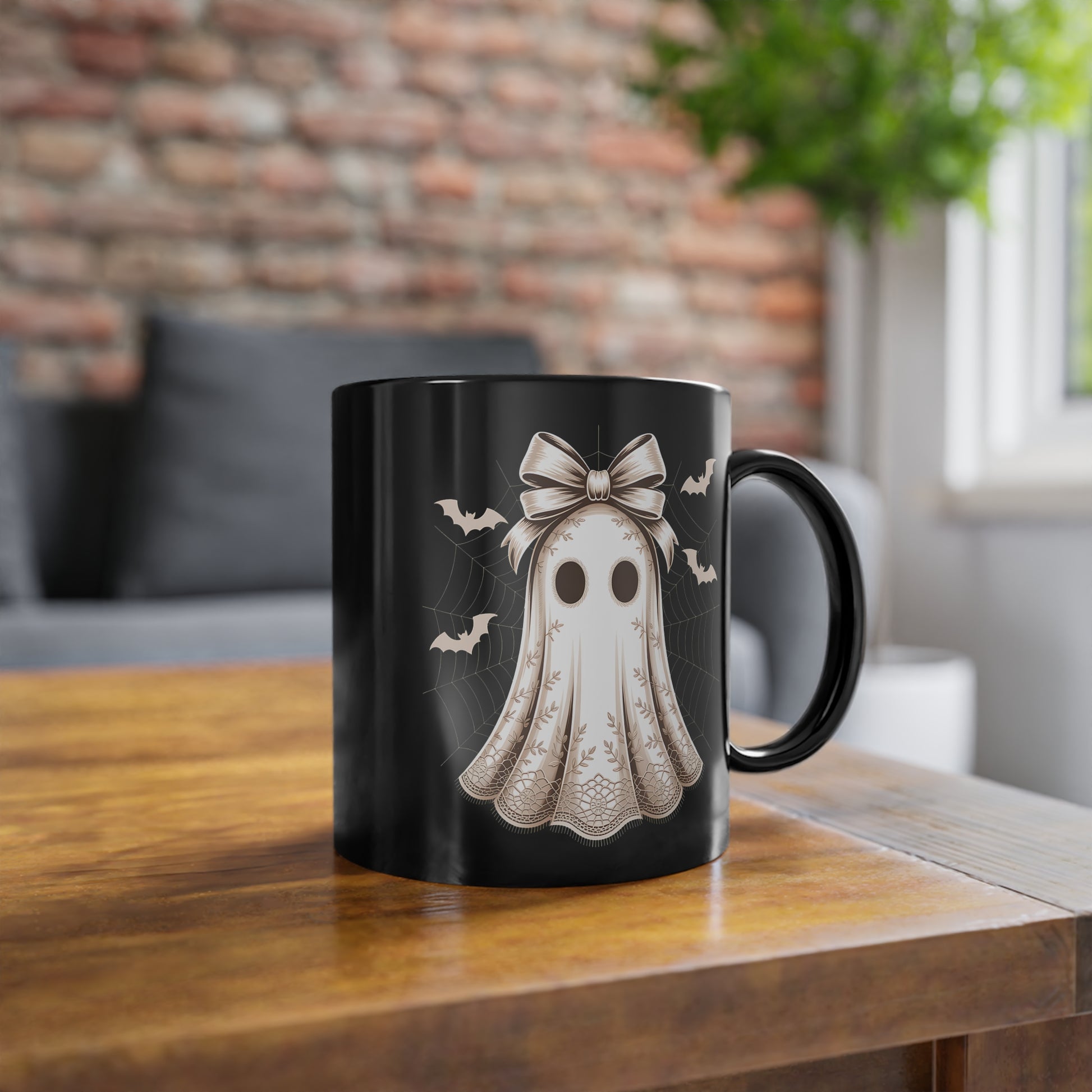 Elegante Halloween Tasse mit süßem Geister-Design und Spitzenlook