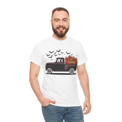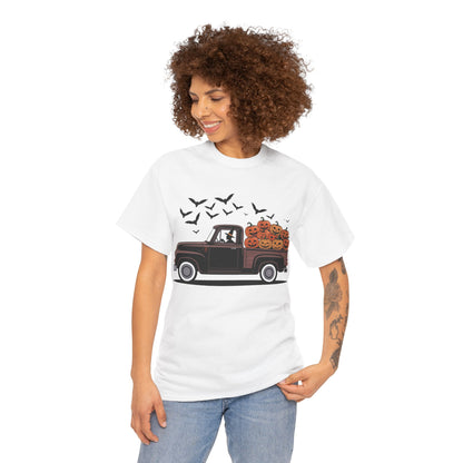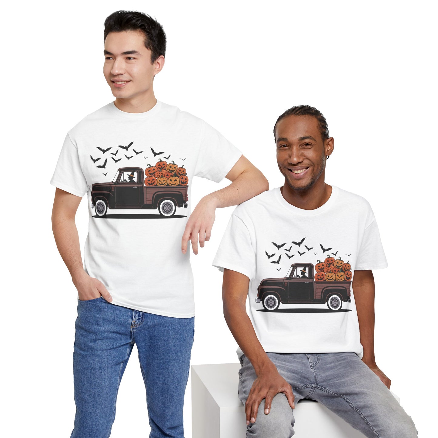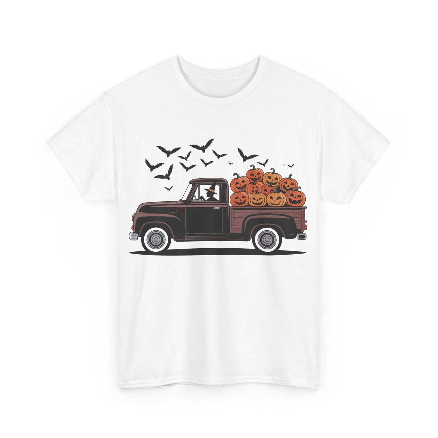 Halloween T-Shirt mit Hexe im Kürbis-Truck