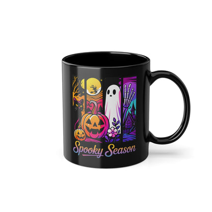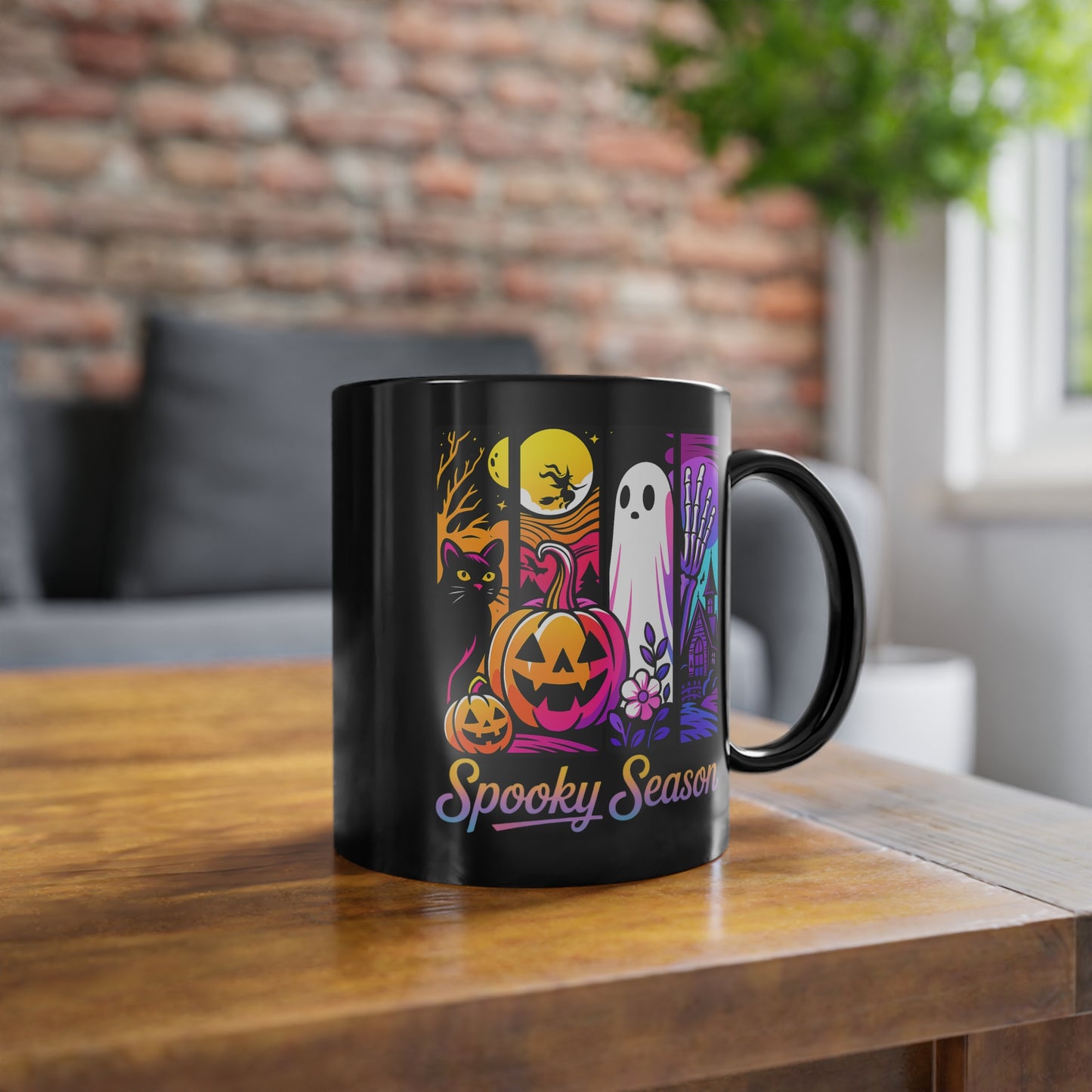 Spooky Season Tasse: Halloween-Design mit Kürbis, Geist & Katze